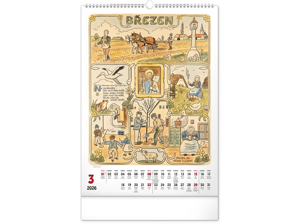 Nástěnný kalendář s ilustracemi Josefa Lady a cyklem 12 měsíců je vyhotoven v oblíbeném formátu, který osvěží každý interiér. V kalendáři je rovnocenně zahrnuta čeština a slovenština, ilustrace doplňuje kalendárium s českými a slovenskými jmeninami, svátky, památnými dny a měsíčními fázemi.