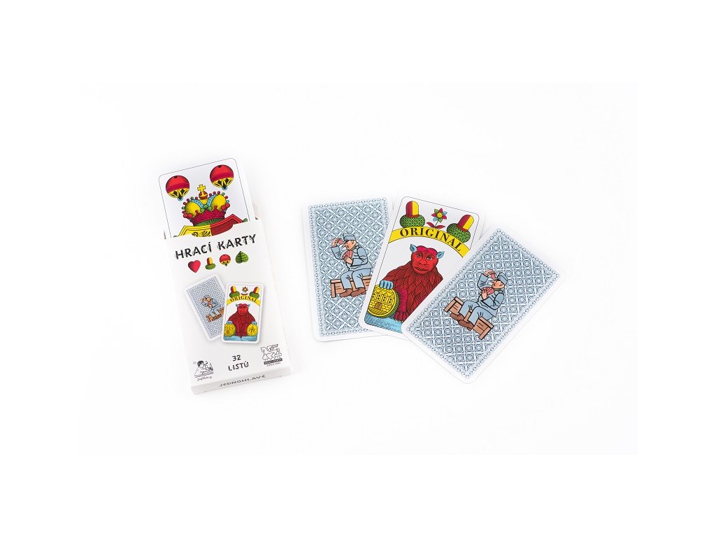 Nové karty s motivem Švejka pro hry jako je prší nebo mariáš, jednohlavé, 32 listů a v papírové krabičce.