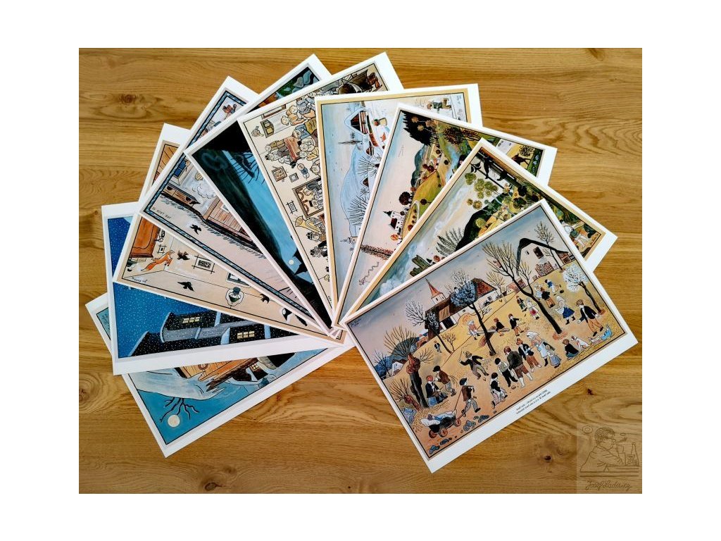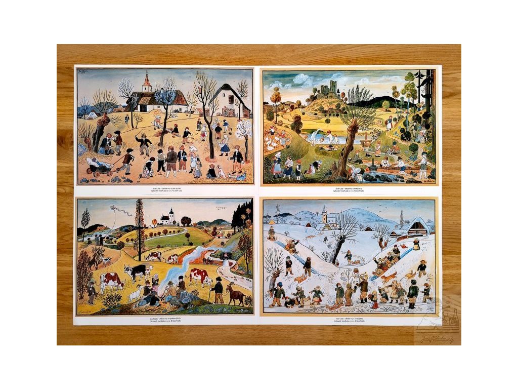 Varianty reprodukcí: 1) Dětské hry na jaře (1936) 2) Dětské hry v létě (1937) 3) Dětské hry na podzim (1937) 4) Dětské hry v zimě (1936) 5) Vodník (1941) 6) Ponocný (1947) 7) Tancovačka (1929) 8) Betlém (1940) 9) Zvířata přezimují v hájovně (1941) 10) Zabijačka (1935)