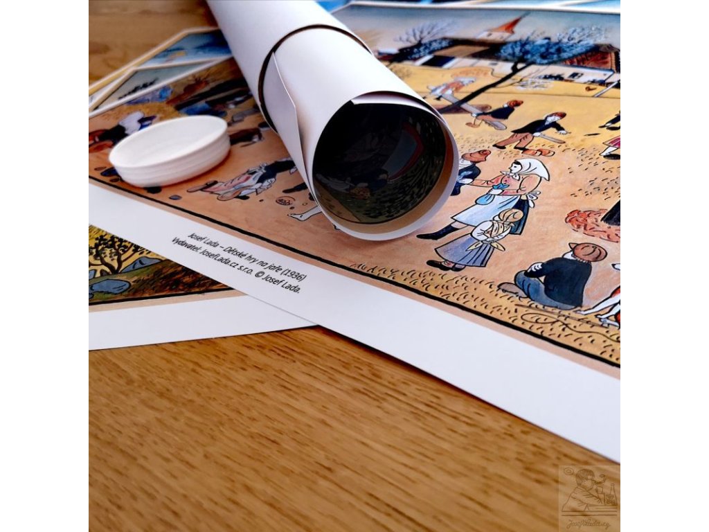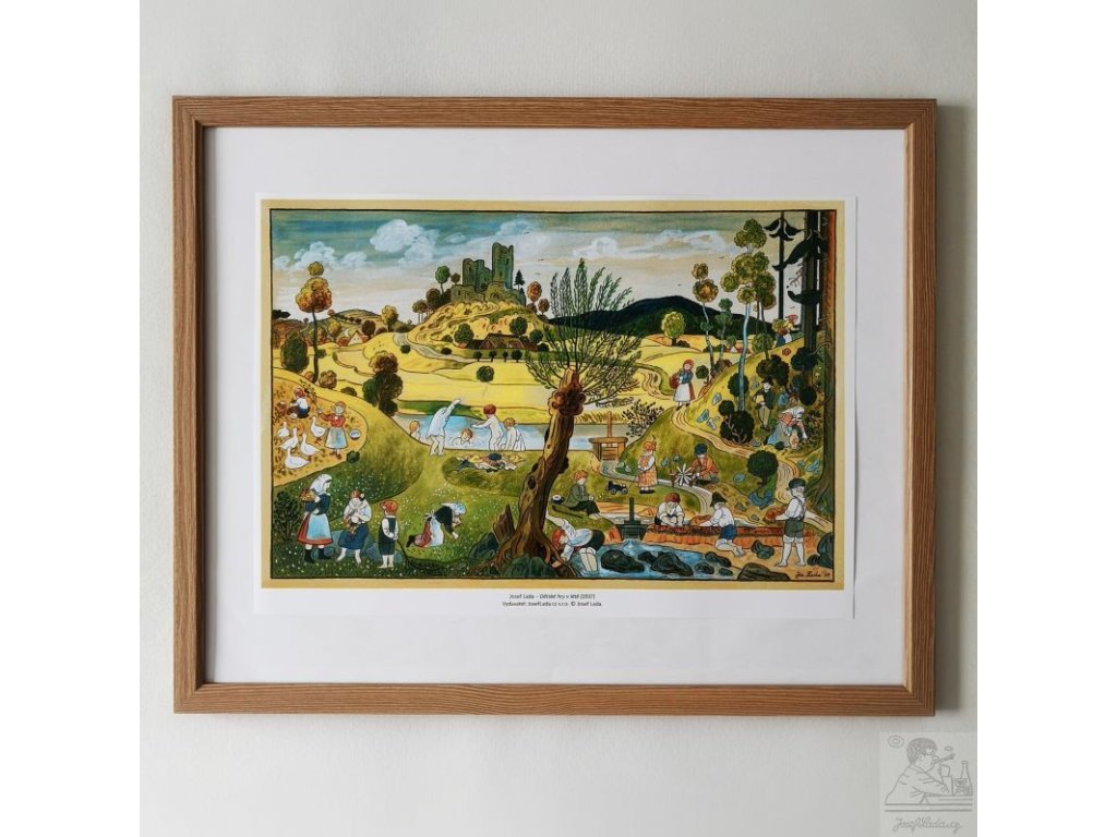 Ilustrační fotografie jsou s běžně dostupným rámem 40 x 50 cm. Formát samotných reprodukcí : „A3” = 29,7 x 42 cm, zasíláno v pevné tubě, viz. foto, rámování ani tisk jiných velikostí na zakázku není možný.